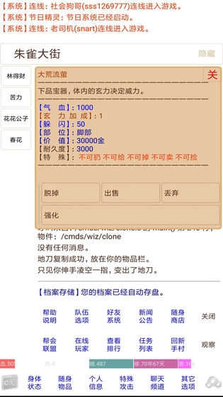 1夺宝MUD乃是一款以纯文字呈现的武侠游戏,能让玩家尽情领略纯文字PK带来的乐趣。