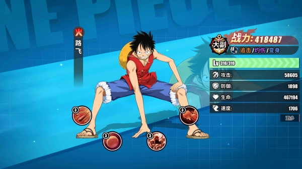 ●装备推荐:无论是装备挑选还是技能选择,都着重围绕攻击、暴击以及伤害加成,以此提升路飞的输出能力。