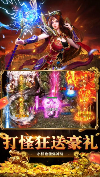 3、刷怪爆率直接翻倍,神装掉落随心所欲,万人同场跨服团战激情开启,带你重温经典传奇的热血时光。