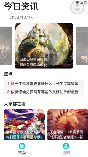 3、在首页中可以查看到各种的游戏资讯内容