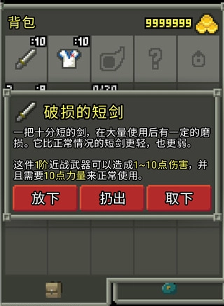 能够查看并使用武器、防具、卷轴、种子等各类道具。