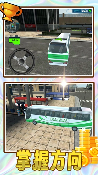 3、你能够使用金币来置换更为优质的大巴车,新大巴车将具备全新的涂装与属性。