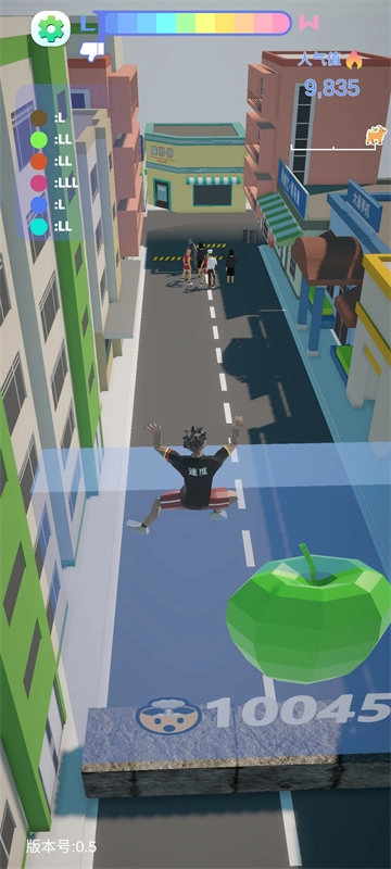 在游戏的模拟直播间里,有人气值这样一个人气系统。玩家可通过拾取道具提升人气值,要是人气值足够高,就能让甲亢哥直接来个后空翻,轻松越过绿苹果障碍,然后帅气地落地!