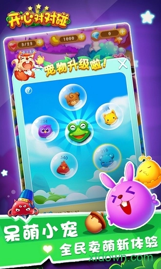 史上超萌三消游戏《开心对对碰》不惧严寒,热力登场啦!它备受亿万玩家青睐,巧妙融合三消与养成玩法。游戏拥有神秘绚烂的画面、丰富好玩的关卡,还有超萌的小宠物相伴,定会让玩家们喜爱到不行!独特的宠物系统与黄金大宝箱,能持续增强玩家能力,助力玩家轻松通关!赶紧来萌宠世界吧~帮助可爱的小动物勇闯神秘森林,收集钻石与水果,寻觅小花和羊驼,一同击败邪恶的小怪兽与大灰狼。开启奇妙的萌宠世界之旅吧~!