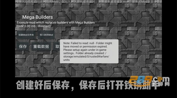 接下来,在菜单中找到模组选项,新建一个名为MOD的文件夹,注意要赋予铁锈储存权限,完成创建后进行保存。