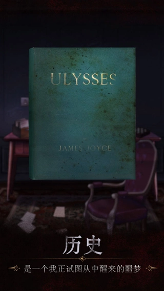 3、按照剧情给出的提示,往左边移动,于书架之上寻得《尤利西斯》这本书。