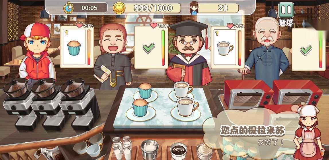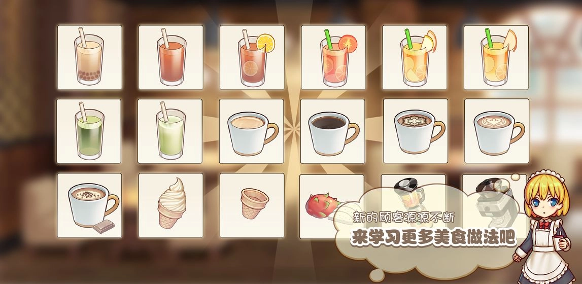 开启更多饮品与甜品的选择,使你的订单数量增多,等级也随之提升。