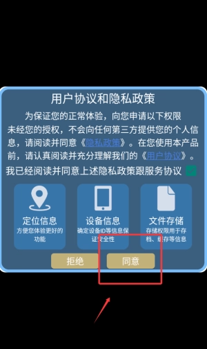 1. 首次启动时,需阅读用户协议条款,点击确认按钮方可进入游戏主菜单界面。