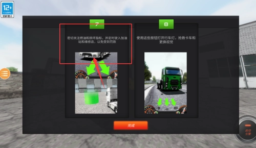 3、依照交互式教学关卡的引导,循序渐进地掌握如转向、换挡等卡车驾驶技巧。在顺利完成基础考核之后,即可开启自由驾驶模式。