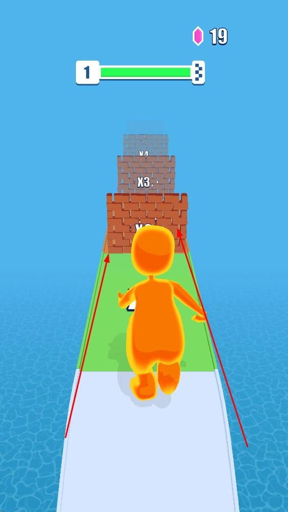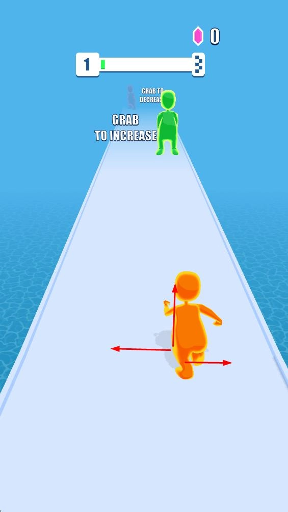 1. 操控橙色角色于道路上移动,向绿色人形靠近并收集,此乃提升角色能力的关键之举,随后开启跑酷之旅。
