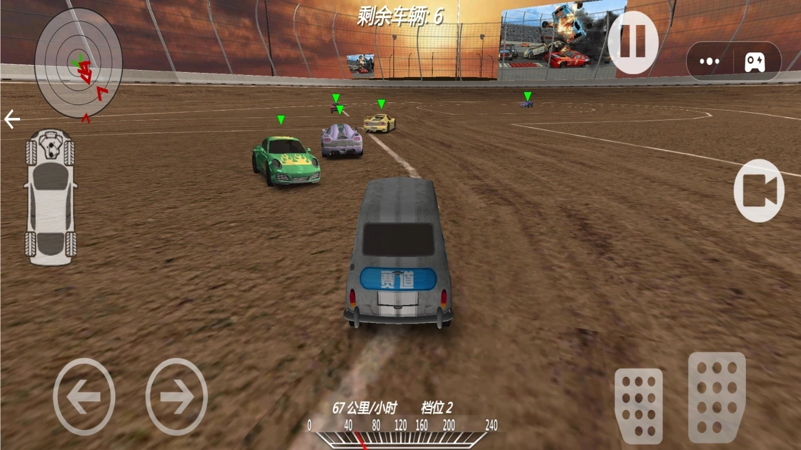 3、通过左右方向键以及油门刹车键,来操控车辆在赛道上行驶与碰撞。