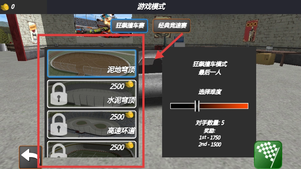 2. 在游戏模式页面,选择“泥地穹顶”这类赛道,开启狂飙撞车赛。