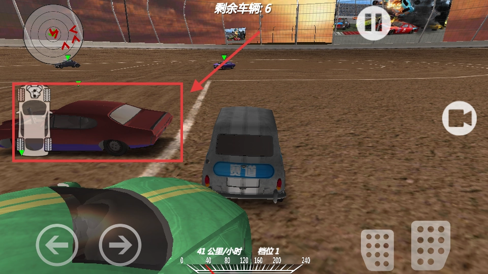 4、锁定红框里的敌方车辆,通过撞击将对手淘汰,力求在剩余车辆中占据领先位置。