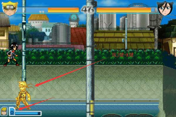 4、当能量达到3格满值时,同时按下J键与K键,就能变身为金色鸣人。