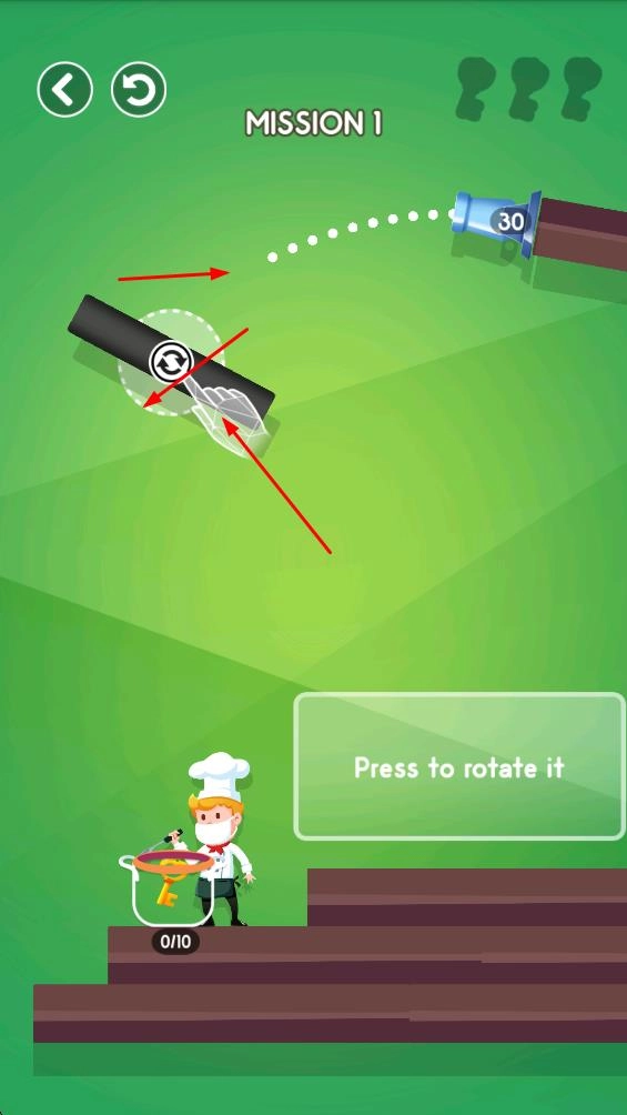 1. 当进入任务界面,点击黑色的可旋转物件,对其朝向进行调整,从而为彩球下落规划出路径。