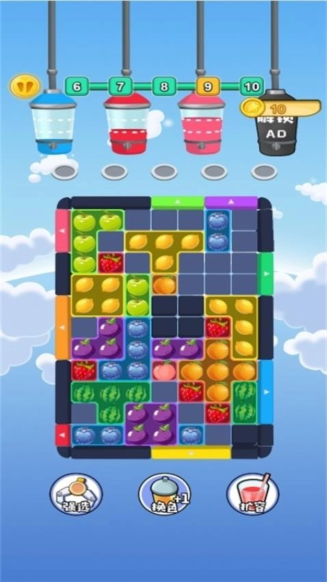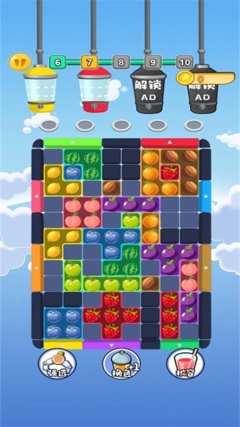 2. 每当玩家成功消除一组水果,就能目睹榨汁进度上升,最终收获一杯可口的果汁。