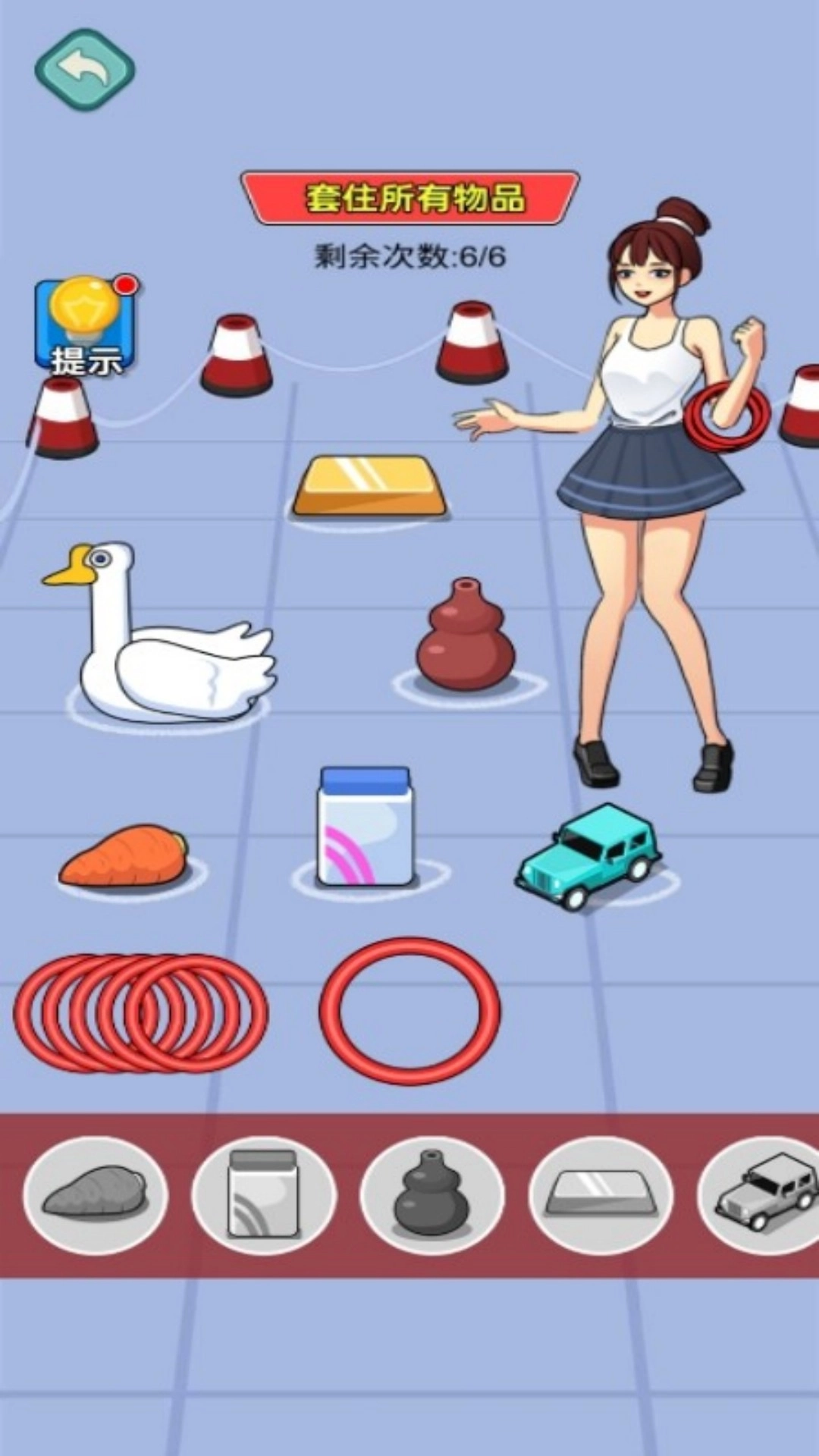 2、玩法为物品套取,借助工具将所有目标物品套住。操作时要把控好力度与角度,务必在规定次数内完成。