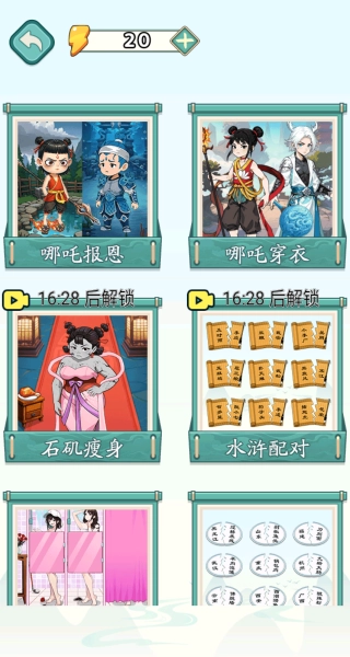 2、提供了多种玩法,包括哪吒报恩、哪吒穿衣、石矶瘦身以及水浒配对,任你自由挑选。