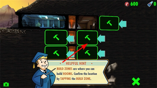 3、于标有绿色锤子图标的建造区域内,点击相应区域,以此确定房间的建造位置。这些区域乃是可供建设房间的特定空间。