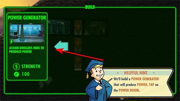 4、于建造菜单里挑选POWER GENERATOR发电室,此房间需要安排居民进行电力生产,它是保障避难所持续运转的关键设施之一。