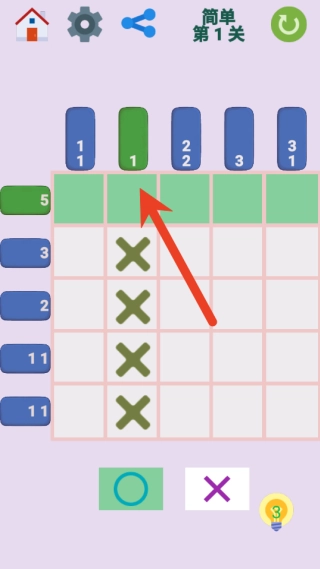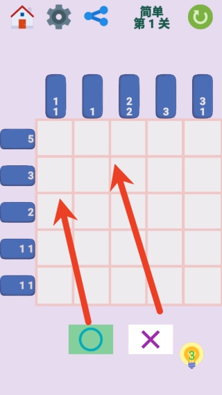 1. 玩家要留意网格上方与左侧的数字提示,这些数字表示该行或该列中需连续填充的方格组。
