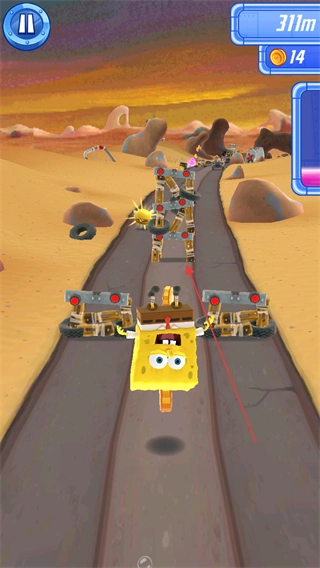 2、要是碰到前方出现车辆之类的障碍物,迅速左右滑动屏幕,使海绵宝宝能及时躲避,防止发生碰撞。