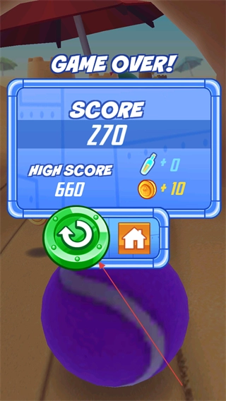 4、要是不小心撞到障碍物致使游戏结束,查看SCORE得分以及HIGHSCORE历史最高分,点击绿色的重置按钮,重新开启挑战,努力跑出更远的距离。