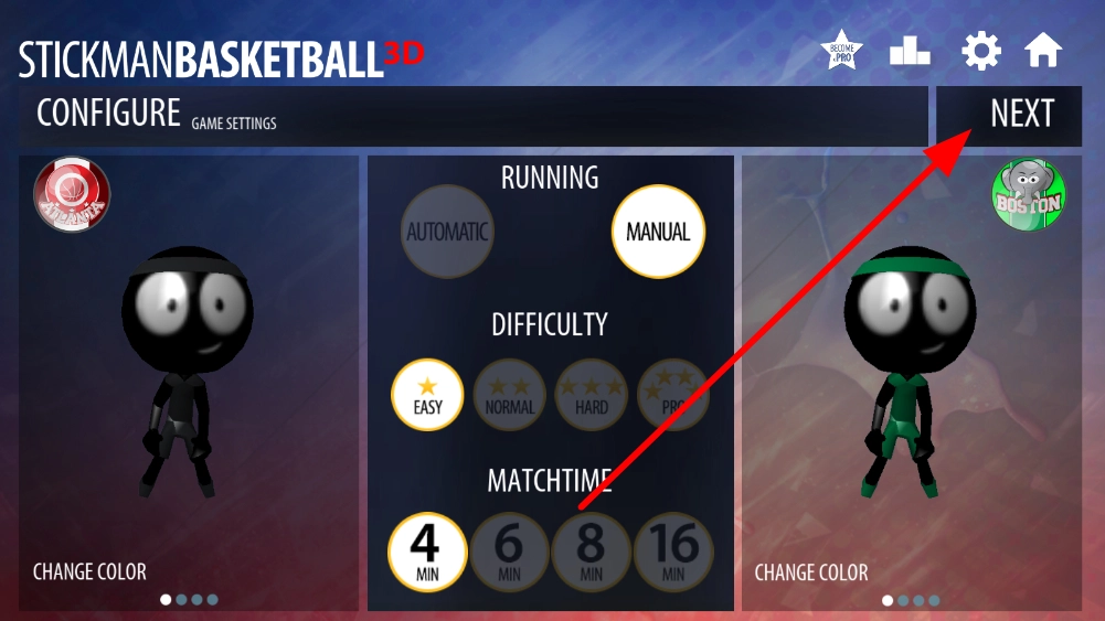 1在赛事准备阶段,需完成游戏设置,比如挑选难度、确定比赛时长等。待设置完毕,点击“下一步”,接着选择自己想要参与的球队赛事,随后开启篮球对决。