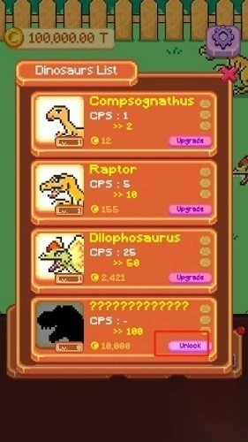 点击解锁新的恐龙,获取全新的恐龙!