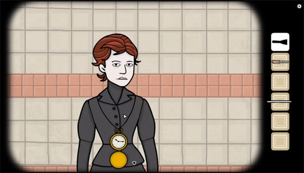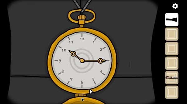 回到婴儿车旁边,点击女士佩戴的怀表,就能看到那个符号。接着我们对照海报上的图案来描画这个符号,按照左上、左下、右的顺序操作就能解锁,之后会显示出10点15分的时间。