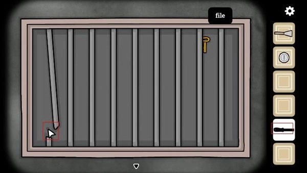 我们返回存放箱子的地点,查看排水管,使用锉刀取下断裂的水管,得到断裂的水管和钥匙。