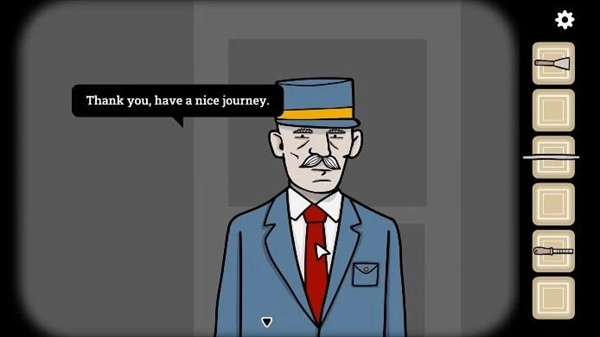 当我们与列车工作人员互动时,系统会提示我们出示乘车凭证;而当我们触碰该工作人员右侧的衣袋时,能够从中获取一枚金属货币。
