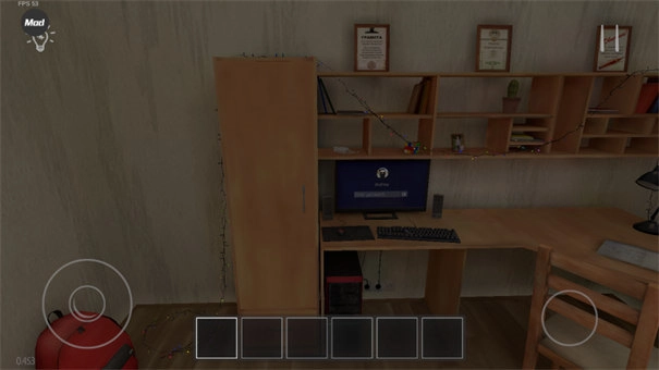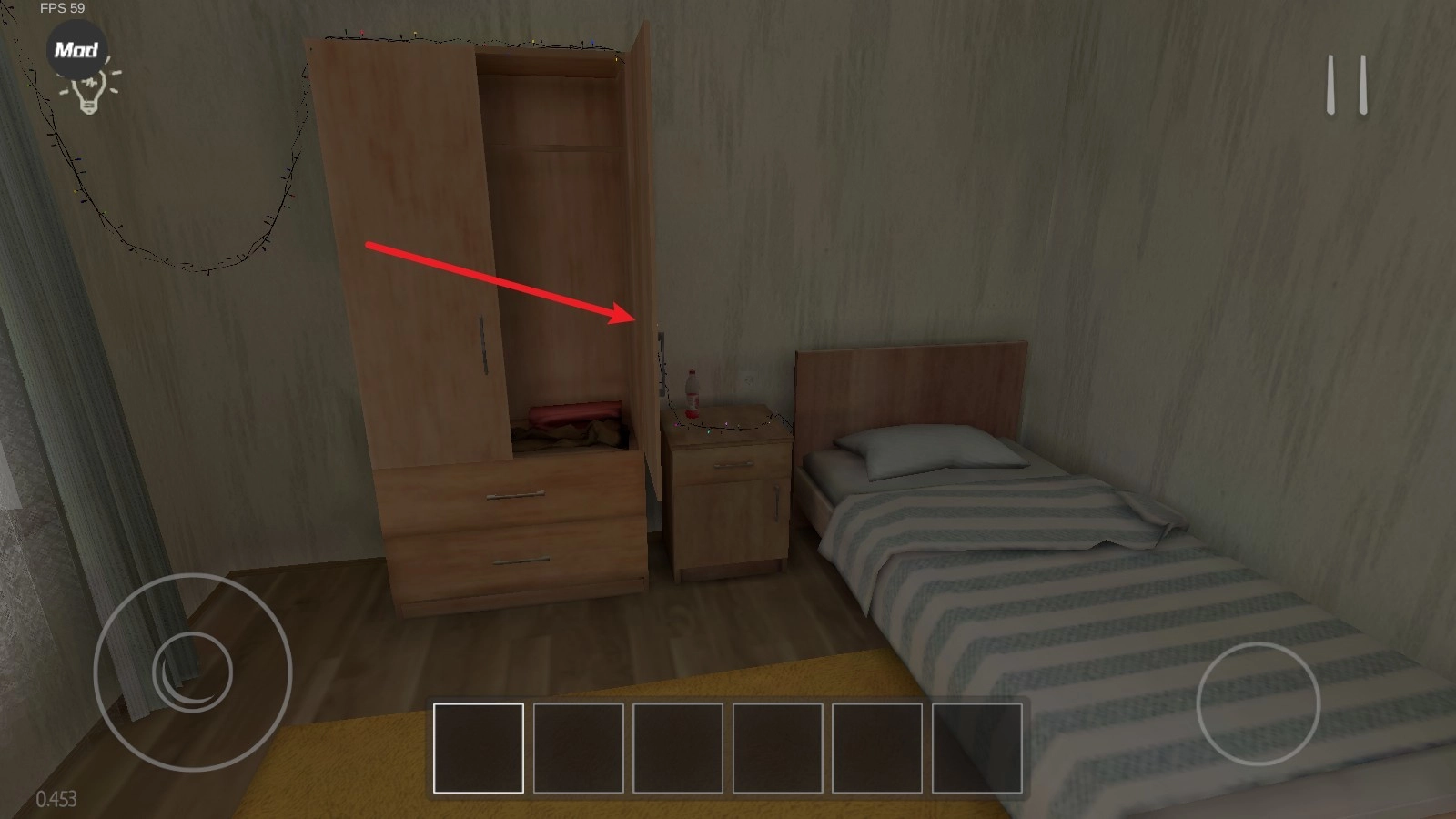 游戏启动后,玩家会置身于一个房间之中,借助摇杆来控制角色移动,点击场景里的物品即可触发互动操作,比如打开房门、开启柜子等。