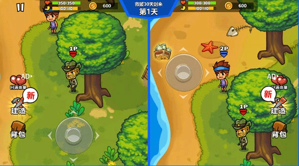 这款主打双人联机的海岛生存游戏,以可爱的Q版画风和自由的建造玩法为特色,让两位玩家在无人荒岛上开启一段既紧张刺激又需要默契配合的求生冒险。游戏提供合作生存模式,玩家们将在日夜变化的环境中面对资源短缺和野兽侵扰的挑战,需要携手收集物资、搭建营地、打造防御装备,共同抵御夜间怪物的攻击,并在规定时间内等待救援信号。清新的画面风格搭配简单易操作的设计,让它成为一款融合了生存挑战、探索发现与策略规划的休闲合作类模拟游戏。如果你热衷于团队协作、创意建造和生存挑战,这款游戏绝对值得一试!