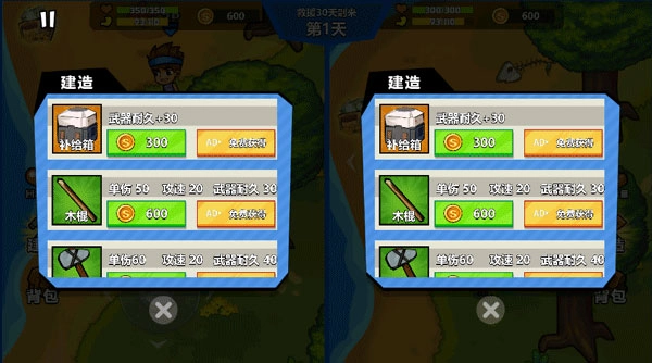 -左侧虚拟摇杆负责控制移动,右侧则用于操作建造、攻击以及使用物品。
