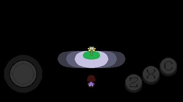 从失足处往右边那扇门走去,会撞见一朵名叫花儿的花。它表面和善,内里却藏着坏心思,想用带着爱意形状的力量伤害你。好在遗迹的守护者Toriel很快赶到,把花儿赶跑了,还答应带你走出这片地下空间。