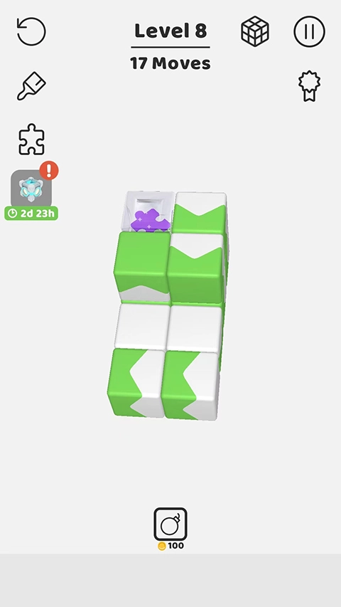 当你打开教学页面,会看到由多个小方块拼接成的组合体,每个小方块都有一侧带有颜色标记,这一侧指示着该小方块的移动路径,且移动时不能被其他小方块阻碍。