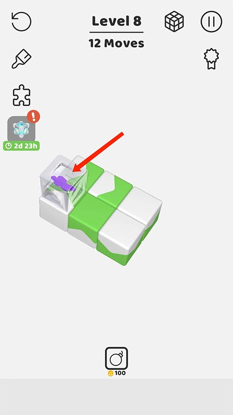 当前还剩8次点击机会,以及两个小方块,只要把这两个小方块消除就能顺利通过这一关了。
