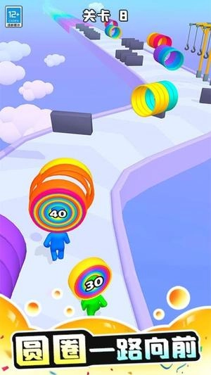 这是一款围绕彩色圆环展开的趣味跑酷闯关游戏,玩家将操控一位头顶光环的角色一路向前冲刺,途中收集散落各处的圆环来让自己变得更强。游戏设计了大量关卡和不同类型的障碍物,需要玩家灵活应对并展现精准的操控能力。随着挑战难度的提升,还会有更多实用道具和个性角色可供解锁,让每一次游玩都充满新的体验。