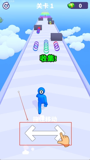 进入游戏后,先选择关卡进入跑酷地图,之后通过左右滑动屏幕来控制角色的移动方向,上下滑动屏幕则可以让角色完成跳跃或下蹲动作,以此躲避途中的障碍。