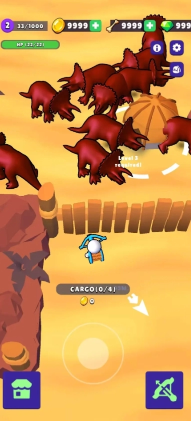 玩家能够抛出绳子,捕捉恐龙之类的动物,而且能成功捕获这些动物,这是一款相当有趣的游戏。