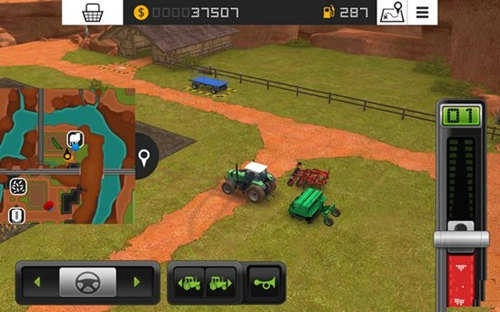 1、务农赚钱是本作最主要的玩法。将农作物加工到不同阶段后再进行贩卖,以获取更高的利润。游戏刚开始时,玩家可以先借钱偿还部分贷款,然后通过购买或者租赁来试驾心仪的农机。