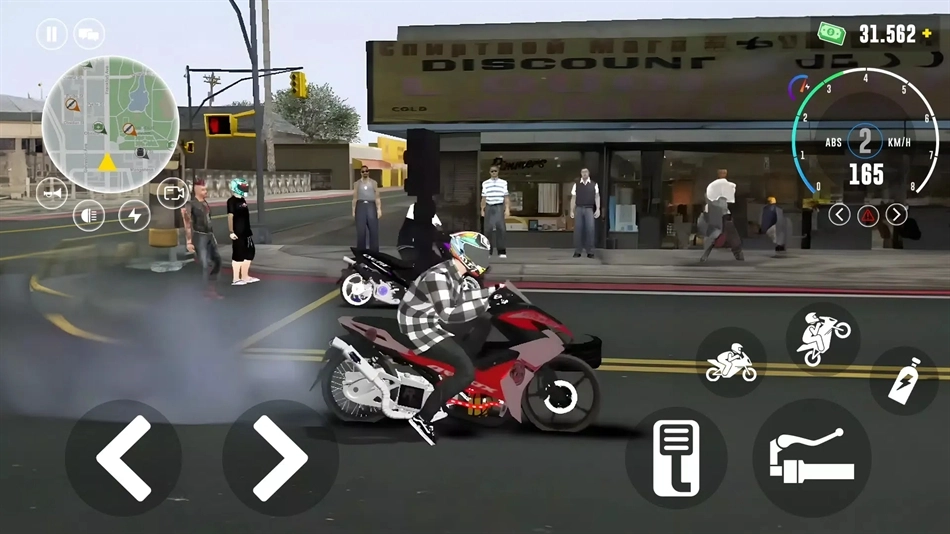 通过左下角的按钮来控制摩托的方向。