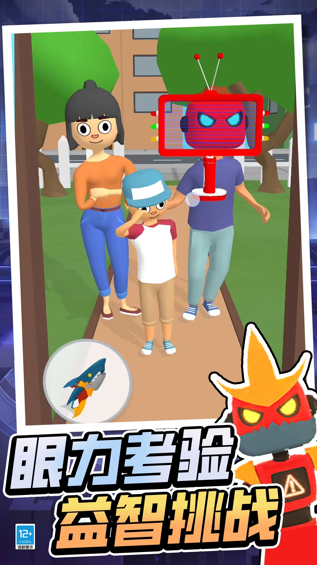 眼力挑战大师版是一款以搜寻入侵机器人为核心玩法的休闲益智类游戏。在游戏里,玩家要在遍布干扰元素的复杂场景中,依靠自身敏锐的观察力和逻辑推理能力,找出隐藏其中的目标。并且,随着关卡的推进,场景的伪装难度会不断提高,从而为玩家带来既锻炼脑力又充满趣味挑战的游戏体验。