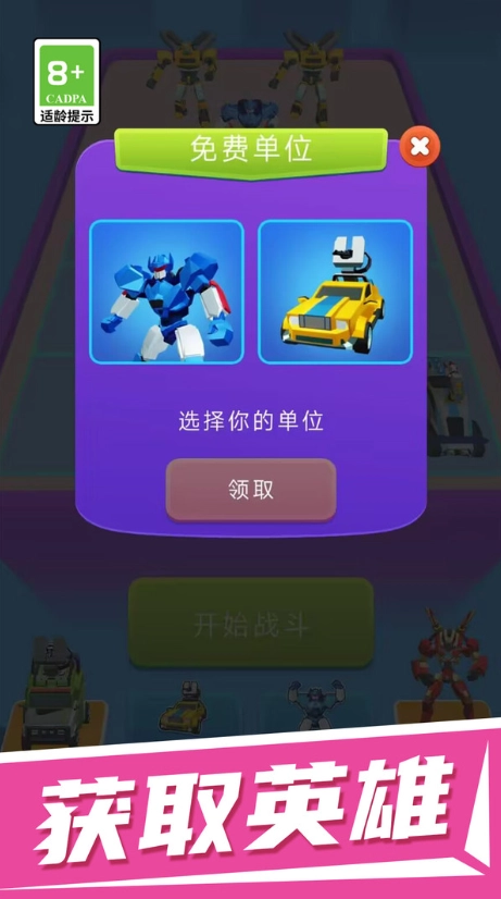 创新推出三合一合成机制,把三个相同的机器人进行合并,即可升级为更高级别的战斗单位。