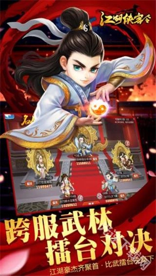 这是一款融合了入门引导、功法修炼、策略布局、江湖冒险、热血格斗等多元玩法的精品RPG武侠卡牌游戏。