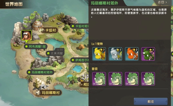 接着选择前往对应的地图区域,就能抵达相应的场景。在场景里,你可以自由地进行探索,要是遇到了自己心仪的宠物,直接点击宠物就能进入捕捉环节。