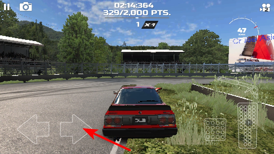 在赛道驾驶过程中,点击右侧的方向按键,能够操控车辆向右调整行驶轨迹,使其更贴合赛道的走向,从而防止偏离赛道而对比赛进度造成影响。