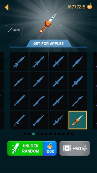 在游戏进行时,靶子上会随机出现苹果,只要收集到这些苹果,就能解锁更多外观精美的飞刀。