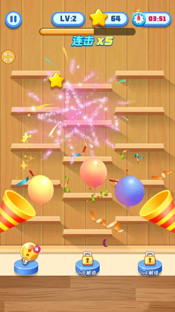 每次成功通关都能解锁全新的道具,每一种道具都具备独特的功能,助力玩家攻克所有难题。